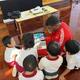10月23日(木)袋井消防署の職員の方が来て、火事の時の避難の仕方を教えてくれました。 「火災の時は、火だけでなく煙がでるので、煙を吸わないように持っているハンカチで鼻や口を覆いながら、姿勢を低くして非難するよ。」 1つの部屋に煙を充満させ、火事の時に煙が立ち込めた状況を再現して、その煙の中を避難する体験をしました。子どもたちは、部屋に入った時には緊張していましたが、消防士さんの話を思い出し、ハンカチで鼻と口を覆って、落ち着いて避難することができました。 園庭では、消防士さんから「初期消火について」や「消火器の使い方」の話を聞きました。消防士さんからは次のようなお話がありました。 「消火器を使った初期消火の目安は、小さな火の時だけの対応です。小さな火の目安は、大人の背の高さまでです。天井に届くぐらいの大きな火の場合は、119番通報をしてください。」 「消火器は、①ピンを抜く。②ホースを外し、火元に向ける。③レバーを握って水を出す。火を消す時のポイントは、火の上よりも火の下、火の元を狙うと消えやすいです。今日は水消火器で水が出ますが、本物は白い粉が入っているので、ホウキで掃くように粉を撒いていくと火が消えやすいです。」 話を聞いた後おこなった職員の消火活動を、子どもたちは真剣に見ていました。 次に、「他にもバケツを使って火を消す方法があるんだよ。」とバケツリレーで消火する話を聞きました。初めに大人がやって見せた後、子どもたちも順番にバケツリレーでの消火訓練を体験しました。 水道から火までの距離に数名並び、水の入ったバケツを次の人に渡し火を消していきました。空になったバケツを水道まで運ぶ役も必要でした。バケツの回転が良くなると、次々とバケツが送られてきて1ヶ所に溜まってしまったり、声を掛けないと振り向いて受け取ってくれなかったりしたので、掛け声を掛ける必要性やみんなで力と心を合わせて協力することの大切さを学びました。 バケツリレーのポイントは、「①複数名で並んだ時に、互い違いに体の向きを変えるとバケツを渡しやすいこと。②水の量はバケツの半分より少し多いぐらいが運びやすいこと③なるべく早く、でもそ~っと次の人に渡すこと。」だそうです。 子どもたちにとって今日の経験が有事の際役立つといいなと思います。