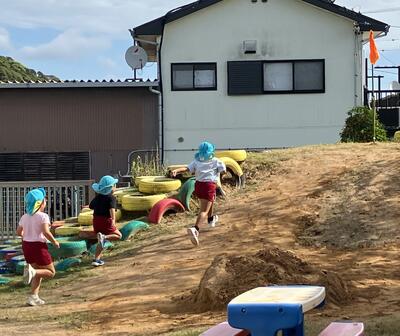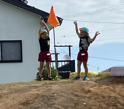 ◇徒競走…力いっぱい走りました!年長児はどろんこ山の頂上がゴール🚩