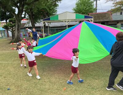 ◇表現…曲に合わせてダンスを踊ったり、気持ちを一つにしてパラバルーンをしたりしました。ステキだね🎵