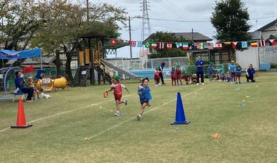 会をとおして、一人一人が力いっぱいがんばった満足感や達成感を感じたり、体を動かして遊ぶ楽しさや心地よさを親子で共有できたりしました。また、保護者のがんばる姿を子どもたちが大きな声で応援する姿から、親子の心の繋がりを感じられました。