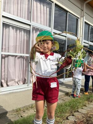 ☆長く伸びたつるは事前に少しとっておき、子どもたちが安全に楽しく取り組めるようにしました。