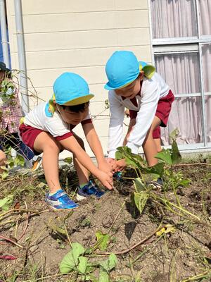 10月29日に園内の畑でさつまいもの収穫をしました。