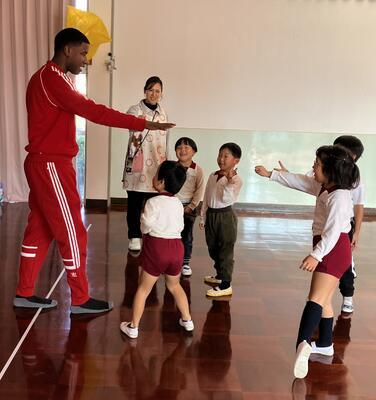 参加する年長の子どもたちは、『ハローイングリッシュって何をするのかな?』『英語話せないけど大丈夫かな…』と、わくわくドキドキしながら遊戯室に向かいました。