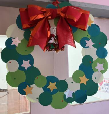 子どもたちのステキな作品や、赤や緑のキラキラモールを飾り、いつもと違った雰囲気を楽しみながら