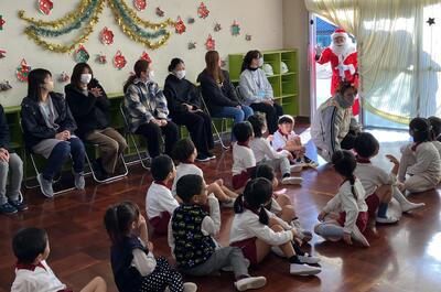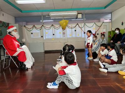 みんなの目はサンタさんに釘付けで、歓声というより驚いて固まってしまう子どもたちでした。