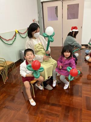 30分ほどのパフォーマンス後は、親子でバルーンアート体験をさせていただきました。