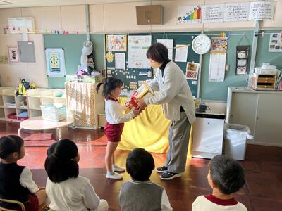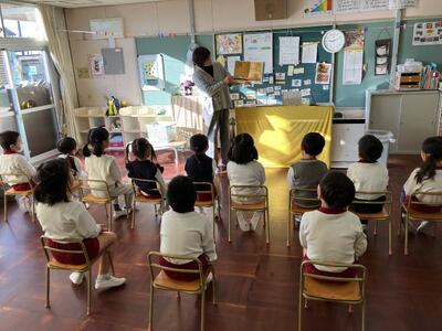 幼稚園園歌斉唱に続いて園長先生のお話へ。