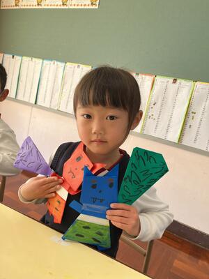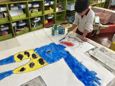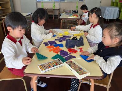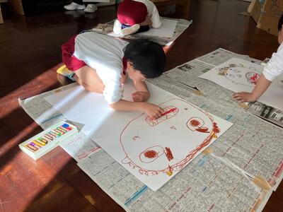 2月3日の節分を迎えるにあたって、『自分の心の中にいる鬼はどんな鬼?』と自分を振り返る機会をつくり、年齢や発達に合わせて折り紙で鬼の制作をしたり、鬼の絵を描いたりしました。その子なりに、どんなところを直すとさらに素敵な人、丈夫な子になれるかを考え、ねぼすけ鬼や寒がり鬼…などと各々決めて豆まきの準備をしていきました。